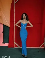 从影多年,舒淇的时尚进化史几乎同步于她的成长轨迹。早年她以清新脱俗的形象出道,逐渐蜕变为如今气场全开的时尚女王。然而,无论造型如何变幻,她那标志性的慵懒卷发、迷离眼神和淡然微笑始终未变——这些细节构成了她独特的“舒淇式”美学符号。在本次芭莎九月刊中,这套红色拖地长裙造型便极具代表性:烈焰红唇与浓郁红色长裙相得益彰,她只需一个侧身,便释放出无可抵挡的霸气女王风范。这不仅是服装的成功,更是个人气质对时尚的绝对主导。